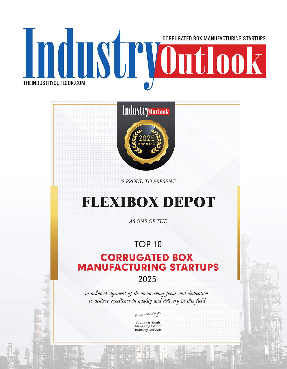 We are thrilled to announce that Flexibox Depot Private Limited has been recognized as one of the Top 10 Corrugated Manufacturing Startups in India! This prestigious recognition is a testament to our unwavering commitment to quality, innovation, and sustainability in packaging solutions.